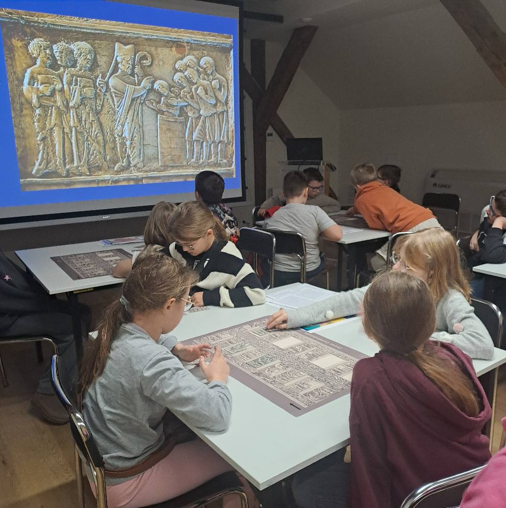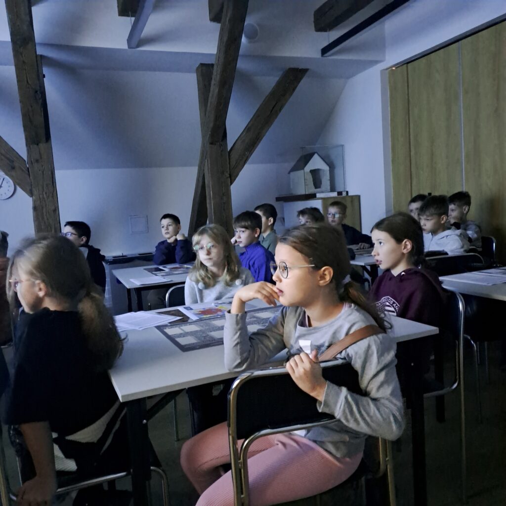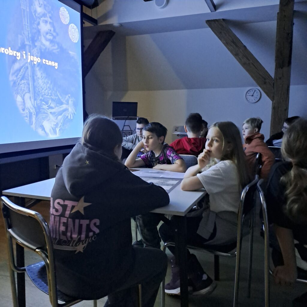 Tematem wizyty czwartoklasistów był panel pt. „Chrobry i jego czasy”. Na początku uczniowie obejrzeli ciekawą prezentację, z której dowiedzieli się, kim był Bolesław Chrobry, w którym roku i w jakich okolicznościach odbyła się jego koronacja i że życie w dawnych czasach nie należało do najłatwiejszych.