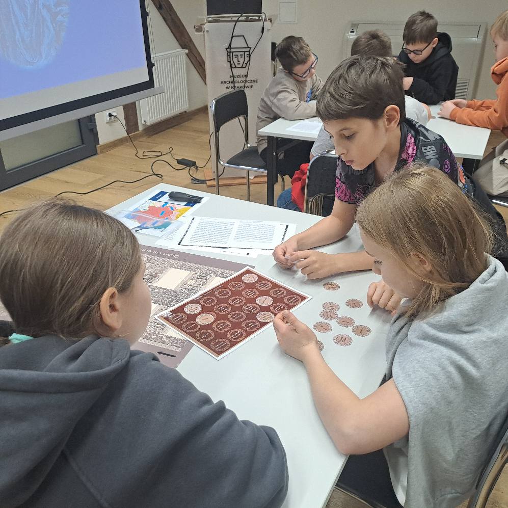 Następnie czwartoklasiści przypomnieli sobie legendarne początki państwa polskiego, odczytali fragmenty średniowiecznych kronik, a później zmierzyli się z układankami tematycznymi, które dotyczyły pojęć związanych z panowaniem pierwszych Piastów. Poznali też historię życia św. Wojciecha, dzięki czemu udało im się uporządkować sceny upamiętnione na Drzwiach Gnieźnieńskich. Zadanie sprawdziło ich wiedzę, współpracę i cierpliwość.