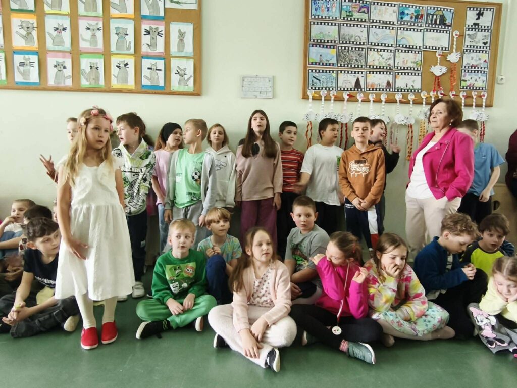 Uczniowie klas 1–3 zaprezentowali swoje talenty muzyczne, śpiewając wiosenne piosenki, które wprowadziły wszystkich w pogodny nastrój ![]()