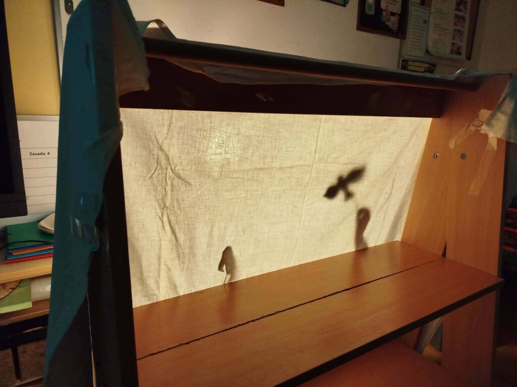 W klasie 1b uczniowie, pod okiem Pani Asi – Joanna Kwaśny – mieli okazję zapoznać się z podstawowymi zagadnieniami teatralnymi, takimi jak: aktor, scena, widownia, kurtyna, spektakl, rekwizyty. Dzieci poznały różne techniki teatralne: pantomimę, teatr ruchu, teatr lalkowy, teatr cieni. Samodzielnie wykonały postacie do przedstawienia.